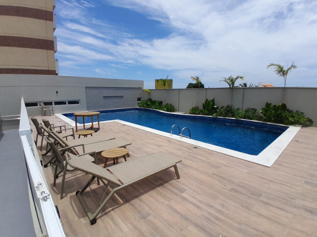 Piscina adulto e infantil com deck;